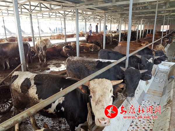 走進(jìn)壩河鎮(zhèn)斑竹園社區(qū),映入眼簾的一座現(xiàn)代化養(yǎng)殖場(chǎng)格外引人注目,圈舍里的肉牛站在食槽前,體型健碩,正等待飼養(yǎng)人員添料喂食。