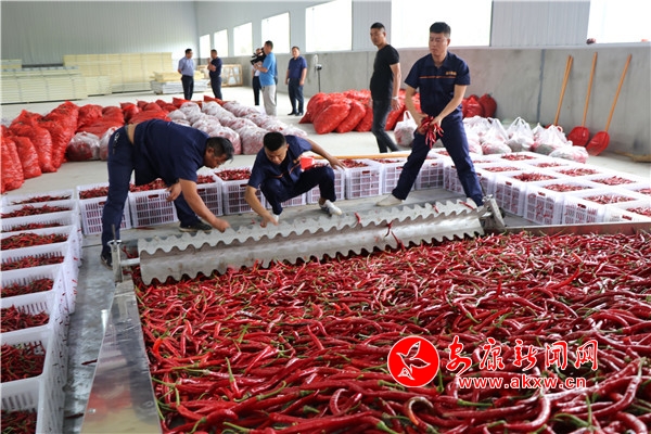 本網(wǎng)訊(通訊員 周濬)9月5日,隨著一筐筐鮮椒被倒在傳送帶上進(jìn)行烘干,位于安康市漢濱區(qū)五里鎮(zhèn)張營村的安康益禾辣椒烘干廠試產(chǎn)成功,正式投入運(yùn)營,這是安康市首家現(xiàn)代化的辣椒烘干廠。