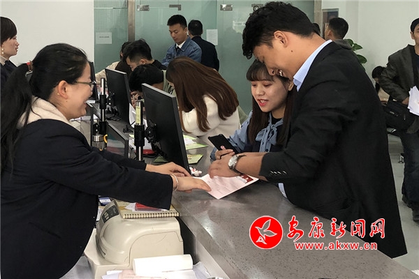一大早,為了讓新人們順利完成登記,漢濱區(qū)婚姻登記服務(wù)中心工作人員提前到崗,做好迎接婚姻登記小高峰應(yīng)急準(zhǔn)備工作,還推出了登記一條龍服務(wù),提高辦證效率。很多新人正欣喜地等待辦理結(jié)婚證,憧憬著未來(lái)的幸福和甜蜜。其中有的剛剛辦完結(jié)婚儀式,而有的本來(lái)很早就想領(lǐng)取結(jié)婚證,但一直在等一個(gè)最有紀(jì)念意義的日子領(lǐng)證,所以等到了“雙11”。準(zhǔn)新郎小趙和小李一臉喜氣洋洋,小趙告訴工作人員,他們和朋友一起特地選擇這一天一起來(lái)領(lǐng)證,因?yàn)?ldquo;雙11”這天領(lǐng)證,從此兩人“一生一世,一心一意。”