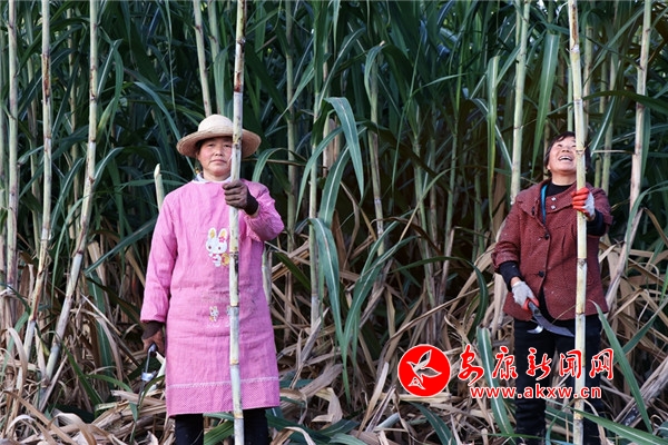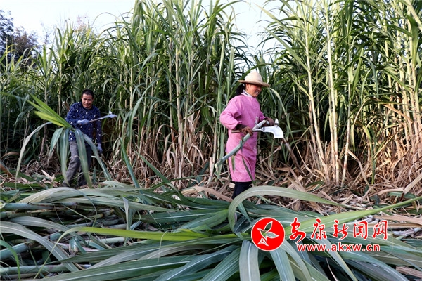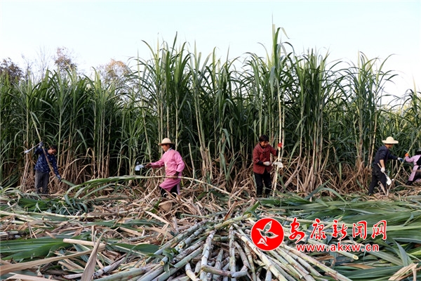 “今年的甘蔗大豐收啊,長(zhǎng)得好的很。”正在采收甘蔗的村民陳開云說,“自從村上發(fā)展了甘蔗種植產(chǎn)業(yè),我就在甘蔗基地務(wù)工,種甘蔗,收甘蔗,一天能掙上80元。”