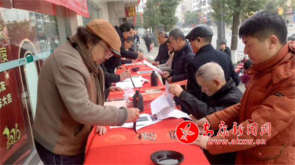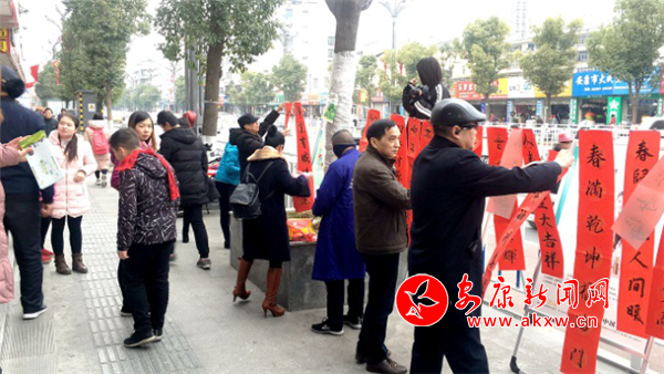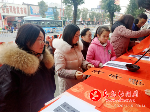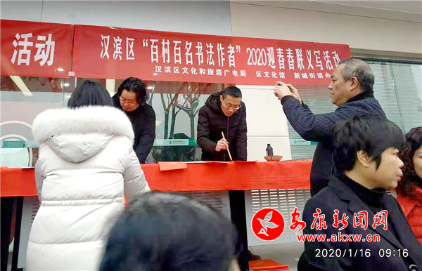 本網(wǎng)訊(通訊員 王艷 劉長青 趙小順)“迎新春、貼春聯(lián)”是中華民族的傳統(tǒng)文化,突顯了年味民味,一副副精美的春聯(lián),蘊(yùn)含著辭舊迎新的美好祝福。2020年1月16日,漢濱區(qū)文化旅游廣電局、漢濱區(qū)文化館、新城街道辦分館在巴山中路舉辦“百村百名書法作者”義寫和2020年“文化小康行動——萬副春聯(lián)進(jìn)農(nóng)家”活動。