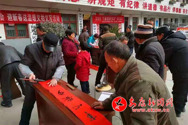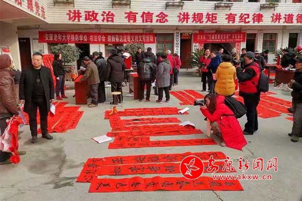 本網(wǎng)訊 (通訊員 胡德良)為迎接新春佳節(jié),營造喜慶祥和的節(jié)日氛圍,1月16日,漢濱區(qū)早陽鎮(zhèn)文化綜合服務(wù)站邀請安康老年大學(xué)攝影學(xué)會(huì)和書法學(xué)會(huì)在該鎮(zhèn)機(jī)關(guān)大院開展“迎新春、送溫暖、義拍義寫”活動(dòng),為山區(qū)群眾寫春聯(lián)、拍攝全家福、送新春祝福,也拉開了該鎮(zhèn)2020年文化、科技、衛(wèi)生“三下鄉(xiāng)”的大幕。