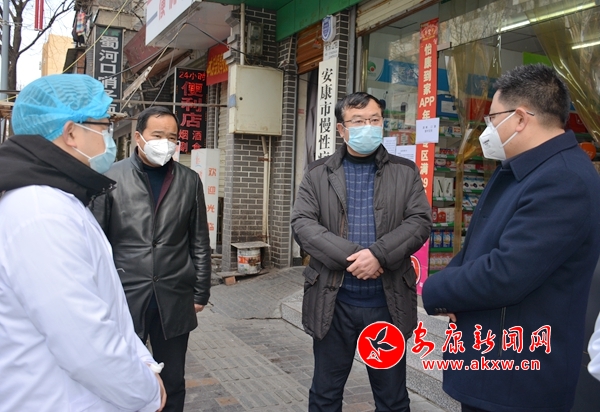 在老城社區(qū)衛(wèi)生服務(wù)中心,區(qū)長范傳斌對(duì)街道辦的新型冠狀病毒疫情防控宣傳點(diǎn)位的物資配備提出了標(biāo)準(zhǔn),指出當(dāng)前形勢的嚴(yán)峻性,老城街道要進(jìn)一步濃厚宣傳氛圍,堅(jiān)持“外防輸入、內(nèi)防擴(kuò)散”的基本思路。