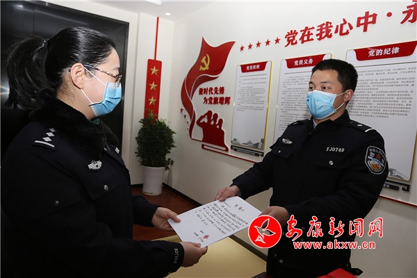 “我是一名公安民警,穿上了這身制服,就應當肩負起這份責任。疫情在前,我們責無旁貸堅守前線。為人民服務不是一句口號,而是切切實實的行動。我愿意在這場沒有硝煙的戰(zhàn)場上,接受黨組織對我的任何考驗!”2月2日,正在抗擊疫情一線的派出所民警洪慶文,鄭重向黨支部遞交了“火線”入黨申請書。