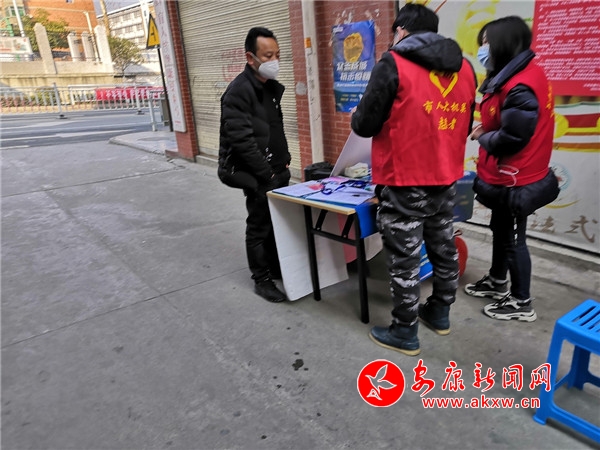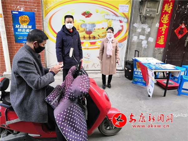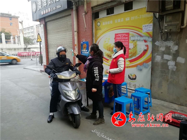 新鋪社區(qū)轄區(qū)老舊無物業(yè)小區(qū)多,黨校西巷里有5個老舊小區(qū),為筑牢疫情防控第一道防線,社區(qū)在巷口設(shè)立了疫情排查卡點,社區(qū)工作人員不但要承擔戶外排查點的值守,還要承擔信息的核實和上報、帶社區(qū)醫(yī)生入戶測量體溫等任務(wù)。“五城聯(lián)創(chuàng)”幫扶單位安康市人大辦、市殘聯(lián)得知社區(qū)面臨困難后,市人大辦每天3名黨員、市殘聯(lián)1名黨員、中國聯(lián)通安康分公司1名黨員主動到社區(qū)報到領(lǐng)崗,助社區(qū)共戰(zhàn)“疫”。他們不畏嚴寒、不懼風險、嚴防值守,對每一位進出小區(qū)的人員認真登記、仔細詢問,嚴格做好居民小區(qū)外來人員勸返,耐心勸導(dǎo)小區(qū)居民多居家、少外出,及時向小區(qū)群眾發(fā)放防控知識宣傳資料。