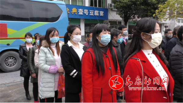 3月9日上午,32名務工者帶著行李、佩戴口罩,齊聚在茨溝鎮(zhèn)中心廣場,統(tǒng)一乘車前往甘肅臨夏務工就業(yè),朱紀滿就是其中之一。