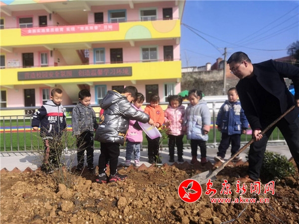 本網(wǎng)訊(通訊員 章軒 謝曉溪)陽(yáng)春三月,草長(zhǎng)鶯飛間,冬天的寒意還未褪去,春天帶著綠色的氣息走來,春風(fēng)吹綠了枝頭上的嫩芽,吹綠了校園的小草,也吹動(dòng)了師生愛綠護(hù)綠、裝扮校園的熱情。3月12日,漢濱區(qū)流水鎮(zhèn)學(xué)坊埡小學(xué)和學(xué)坊埡社區(qū)幼兒園舉行了植樹節(jié)系列活動(dòng)。