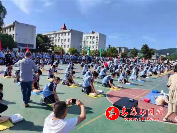 活動(dòng)中,漢濱區(qū)區(qū)紅十字藍(lán)天志愿服務(wù)隊(duì)的隊(duì)員們結(jié)合溺水事故案例,對(duì)防溺水應(yīng)急處理、心肺復(fù)蘇等救護(hù)技能進(jìn)行了系統(tǒng)的講解和演示。隨后學(xué)生們組成的百人演練團(tuán)在專業(yè)老師的指導(dǎo)下完成了心肺復(fù)蘇的實(shí)際操作。