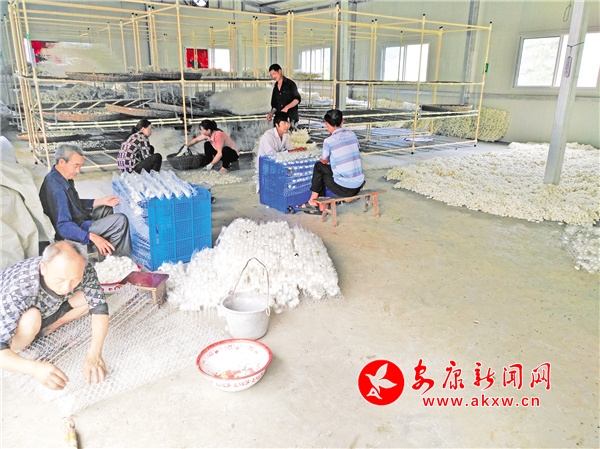 今年4月,養(yǎng)蠶工廠正式投入使用,帶動全村養(yǎng)蠶近200張,累計收入45萬余元,本村20余名脫貧勞動力在養(yǎng)蠶工廠實現(xiàn)就業(yè)。隨著養(yǎng)殖規(guī)模的擴大,養(yǎng)蠶工廠還采用收購桑葉的形式對全村30余戶外出務工人員的閑置桑園進行統(tǒng)一管護,不僅讓閑置桑園有了收益,而且極大地提振了村民發(fā)展蠶桑產業(yè)的信心。目前,夏蠶飼養(yǎng)近100張,較去年同期穩(wěn)步增長,秋蠶也列入了養(yǎng)殖計劃,實現(xiàn)一年三季養(yǎng)蠶目標。