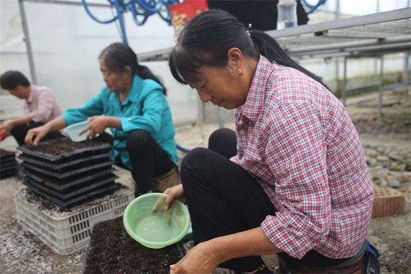 火車跑得快,全靠車頭帶。劉瑞紅充分發(fā)揮黨支部和村“帶頭人”模范作用,建立了土地經(jīng)營權(quán)入股分紅、大棚反租倒包、免費技術(shù)培訓(xùn)、簽訂生產(chǎn)訂單、固定園區(qū)務(wù)工等多種機制,把貧困戶嵌入蔬菜產(chǎn)業(yè)鏈,獲得穩(wěn)定收益。同時,全面推行黨員設(shè)崗定責(zé)、聯(lián)戶幫扶工作機制,采取“一幫一”或“一幫多”的方式精準幫扶,全村70%的勞動力都從事蔬菜種植,90%的貧困戶都通過種菜實現(xiàn)了脫貧。