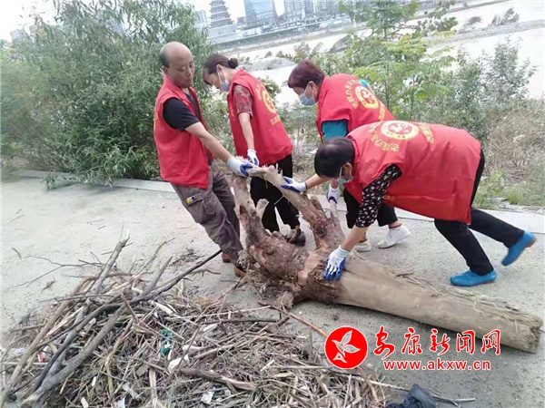 “草地上的那些浮草、枯枝和塑料袋,我們用垃圾車運(yùn)走,有些木頭和大樹根得幾個人才抬得動,還有那些訊后的清淤沖沙工作難度較大。”大北社區(qū)護(hù)河員海燕說。9月8日,天氣放晴、水位逐漸下降后,老城街道辦事處創(chuàng)建辦迅速組織沿江各社區(qū)護(hù)河員開展?jié)h江環(huán)境衛(wèi)生清理整治,清掃河岸爛渣廢料,撿拾草地綠化帶垃圾雜物,沖洗淤泥河沙。截至目前,已清理汛后垃圾35車,清洗沖刷淤泥8000余平方米。目前,清理工作還在繼續(xù),老城創(chuàng)建辦帶領(lǐng)著這支護(hù)河隊伍緊張有序的忙碌著,河道和江邊的垃圾清理工作正穩(wěn)步推進(jìn)。