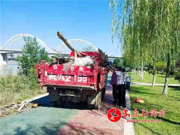 行動(dòng)中,護(hù)河員和專業(yè)施工隊(duì)員密切配合,對漢江南岸金川段、心石段、油坊段、白廟段河道護(hù)坡及岸邊的雜樹木進(jìn)行拉網(wǎng)式清理整治,工人們利用電鋸、刀等工具,將粗大雜樹木進(jìn)行切割規(guī)整,連同細(xì)小樹枝雜草一道搬至步道,然后用車統(tǒng)一運(yùn)走。據(jù)了解,截至9月23日,共清運(yùn)走雜樹木60余車,讓河岸與周邊的美景更好融為一體。