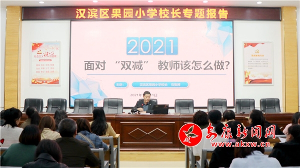 本網(wǎng)訊(通訊員 譚華山)為進(jìn)一步落實“雙減”政策,促進(jìn)教育教學(xué)工作提質(zhì)增效,10月11日下午,漢濱區(qū)果園小學(xué)開展“雙減”專題講座。