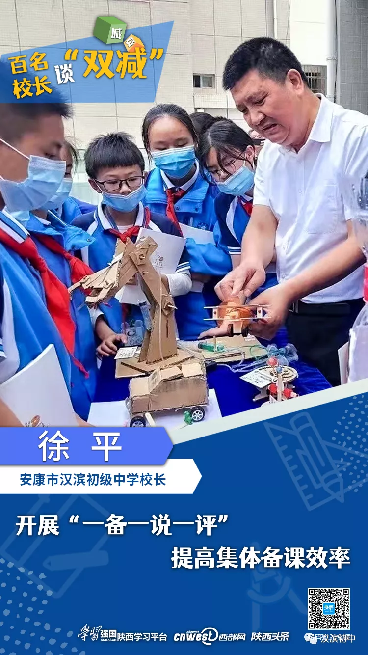 安康市漢濱初級中學(xué)校長徐平在接受西部網(wǎng)·陜西頭條記者采訪時表示,國家“雙減”政策發(fā)布后,漢濱初級中學(xué)迅速行動,統(tǒng)籌謀劃,系統(tǒng)設(shè)計,積極推進(jìn)“雙減”工作落地、落實、落細(xì),在學(xué)習(xí)中領(lǐng)會,在實踐中摸索,實現(xiàn)雙減、課后服務(wù)等工作與學(xué)校常規(guī)工作的有序推進(jìn)。