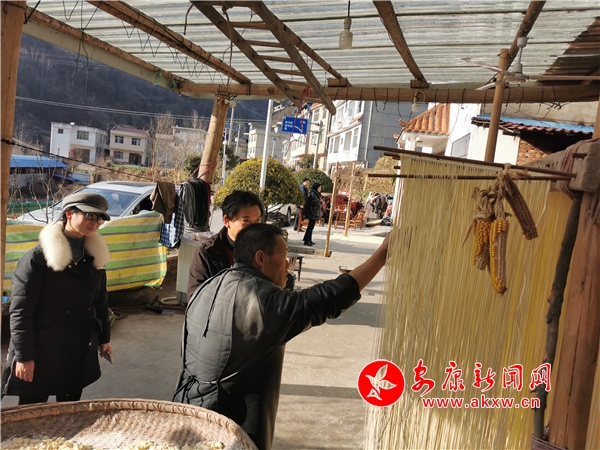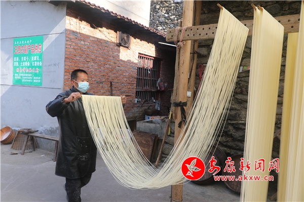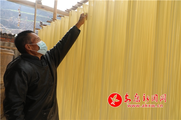 臨近春節(jié),家住漢濱區(qū)茨溝鎮(zhèn)東鎮(zhèn)社區(qū)6組村民任玉貴一家因手工鹽掛面的需求量增多,正加緊生產(chǎn)鹽掛面,和面、醒面、盤條、醒面、扯面、晾曬......今年62歲的任玉貴,已有42年的做面經(jīng)驗。從19歲開始,他跟著本村老手藝人王師傅學(xué)習(xí)手工鹽掛面制作,他制作的掛面瓤而筋,口感好,易消化,能增進食欲,舒暢開胃,老少皆宜。他加工的鹽掛面不僅銷往城區(qū)周邊,而且遠銷西安、深圳、廣東等地?恐约呵趧诘碾p手,家里三間兩層的小樓蓋起來了,日子過的有聲有色。目前該手工技藝正在相關(guān)部門的幫扶下正在申請非遺文化傳承人項目。(鄭時根 攝)