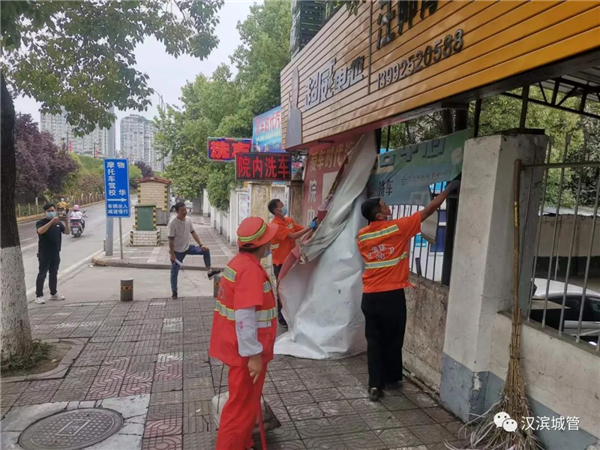 各城管執(zhí)法大隊結合轄區(qū)特點,圍繞提升街面視覺形象和維護一江兩岸景觀形象重點保障任務,結合全天候不間斷巡查和重點值守措施,規(guī)范門店、商鋪和攤販經(jīng)營行為,整飭便民市場周邊秩序,確保人行道環(huán)境整潔、秩序井然;實施破損和違規(guī)戶外廣告集中治理,先后拆除黃溝路、濱江路等處各類發(fā)光字、噴繪、鋼架等戶外廣告59塊,拆除人行道護欄、商鋪門頭、街巷上空、工地圍擋等處所的條幅、噴繪等軟體廣告200余條,切實提升中心城市視覺觀感。
