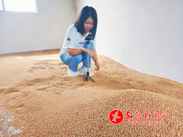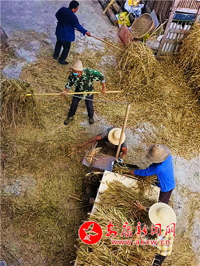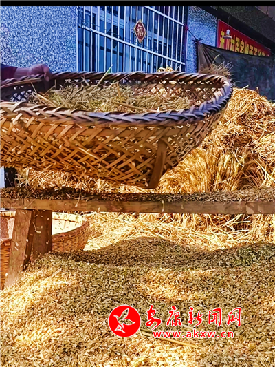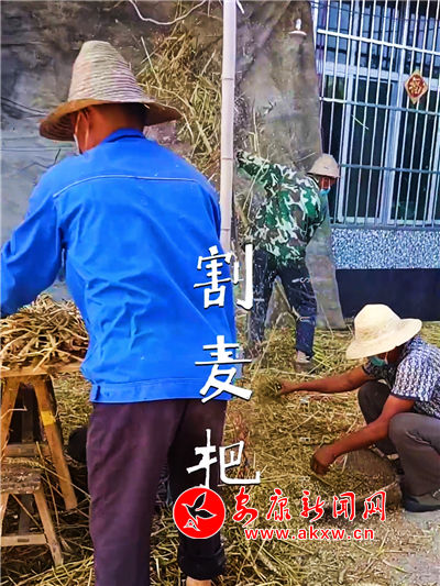 6月6日,驕陽似火。漢濱區(qū)赤衛(wèi)村周全洪一家忙得不亦樂乎,他戴著草帽和口罩,將麥穗一把一把喂進脫粒機,幫忙的鄰居們或抱捆持簸或木叉飛揚,妻子不停地晃動手中竹篩,金燦燦的麥粒散落成堆,女兒夢蝶一邊端茶水遞毛巾,一邊用手機直播:“這是陜南農(nóng)村傳統(tǒng)的打麥子方式。”“形象很酷,動作很帥……是不是?”“要吃富硒新麥子,可以呀!”益農(nóng)的“新農(nóng)具”,帶貨又漲粉。