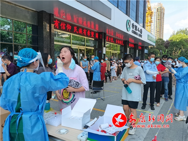 按照全市新冠肺炎疫情防控指揮部的周密部署,8月18日下午,漢濱中心城區(qū)啟動第二次全員核酸檢測工作 。圖為安火路社區(qū)居民在執(zhí)勤民警、醫(yī)務人員、社區(qū)工作者和志愿者的密切配合下,有序開展核酸檢測。(陳榮斌 攝) 4ga安康新聞網(wǎng)