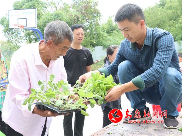 “白菜30株、花菜20株,拿好啊。”社區(qū)支部書(shū)記劉興文一邊說(shuō)著一邊把菜苗遞到吳芳手中。