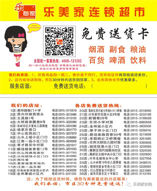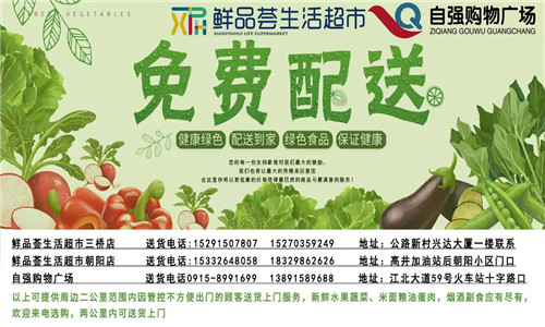 為滿足廣大市民群眾生活必需品的購買需求,避免因人群聚集造成的交叉感染風險,漢濱區(qū)經貿局組織漢濱中心城區(qū)多家保供企業(yè)(超市)推出免費送貨服務,市民朋友可撥打就近購物店電話,各商家將盡心盡力為大家做好服務,解決您的購買需求。PvN安康新聞網