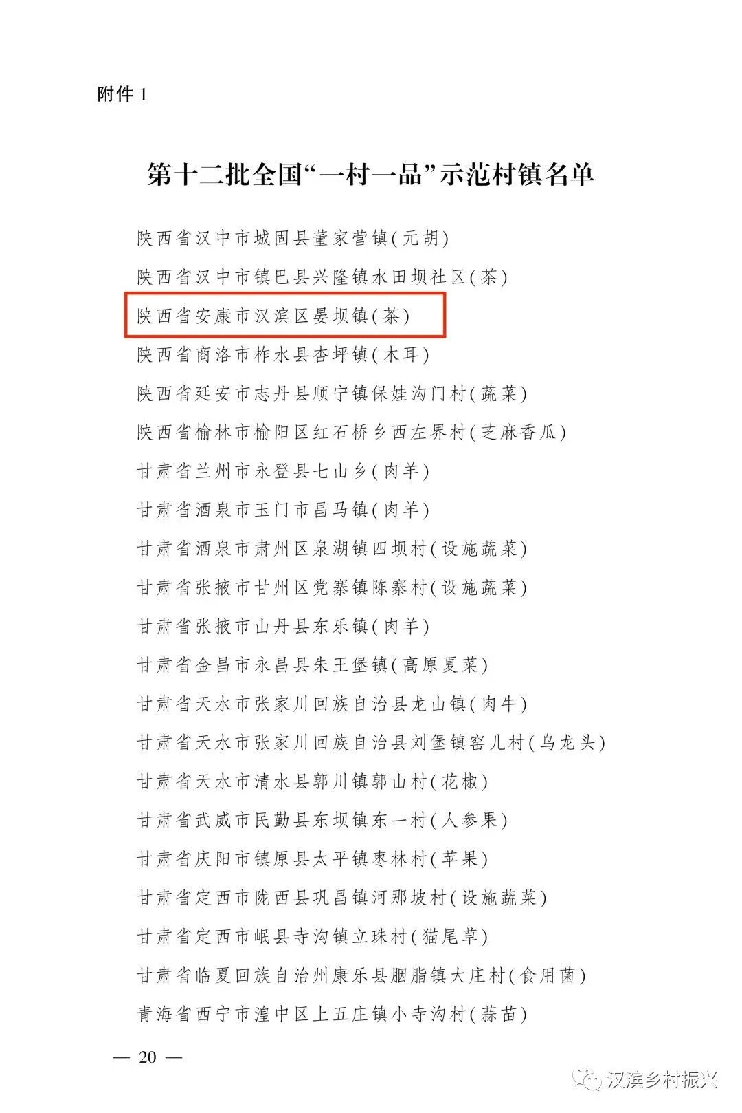 近日,農(nóng)業(yè)農(nóng)村部發(fā)布《關(guān)于公布第十二批全國(guó)“一村一品”示范村鎮(zhèn)及2022年全國(guó)鄉(xiāng)村特色產(chǎn)業(yè)產(chǎn)值超過(guò)十億元鎮(zhèn)和超億元村名單的通知》,漢濱區(qū)晏壩鎮(zhèn)入選第十二批全國(guó)“一村一品”示范村鎮(zhèn)名單。