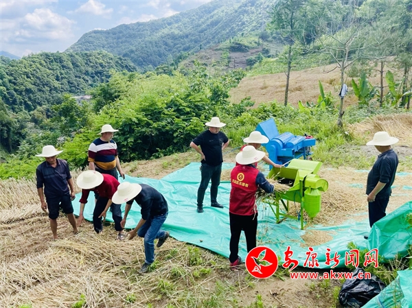 麥收時節(jié),漢濱區(qū)出現(xiàn)連續(xù)降雨,而成熟的麥穗最怕雨水,一旦遇上幾天連陰雨,金黃的麥穗很快就會發(fā)霉發(fā)黑長芽。為了做好搶收作業(yè),紅花村駐村工作隊協(xié)調(diào)了三臺半機械化農(nóng)機調(diào)運到了現(xiàn)場,紅花村第一書記現(xiàn)場指導農(nóng)機使用。鎮(zhèn)村志愿服務小隊戴著草帽、手拿鐮刀也到達了搶收現(xiàn)場,已經(jīng)在幫忙收割了。