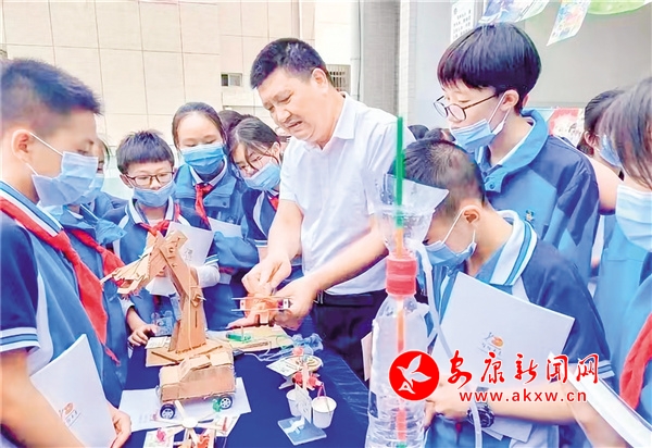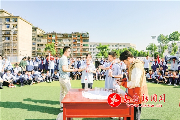 學(xué)校領(lǐng)導(dǎo)和學(xué)生一起參加校園體育科技藝術(shù)節(jié)
