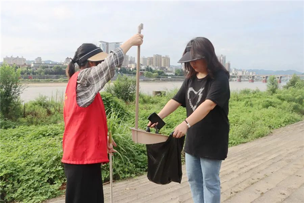 江北街道新時代文明實踐志愿者們手拿垃圾鉗、掃把、垃圾袋等工具,對清水廣場至一橋頭河堤進行“地毯式”清理。有的清掃、撿拾臺階上的煙頭、垃圾袋、紙屑,有的對散落的雜草、落葉進行清理,大家分工合作、相互配合,各個干勁十足,清理場面熱火朝天。不一會兒,草更青、岸更美。