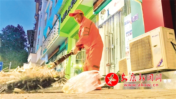 “要趕在早高峰之前完成第一次大掃,等天亮好了路上車多就掃不成了。大掃完還要在仔細(xì)打掃兩遍,差不多就到學(xué)生娃們上學(xué)的時間了,得去學(xué)校附近撿紙屑。”說完花子強(qiáng)加快了打掃的動作。