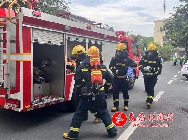 演練活動模擬不明原因?qū)е略撔^(qū)一住戶家著火,情況緊急,需要立即疏散該樓層的所有人員。在演練過程中,一系列緊張而有序的場景依次呈現(xiàn)。首先,在演練樓層釋放煙霧,營造出逼真的火災(zāi)場景。緊接著,消防車迅速開進小區(qū),消防人員利用擔架上樓,成功救援模擬受傷人員,并有條不紊地疏散了樓層內(nèi)被困的人員。在一樓,醫(yī)護人員嚴陣以待,隨時準備對受傷人員進行緊急救治。