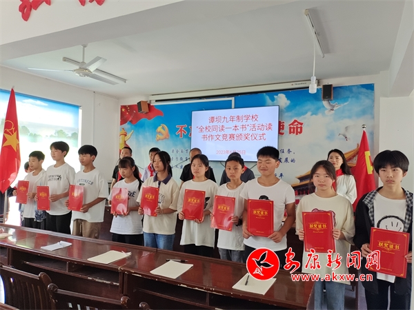 當(dāng)天,安康市書(shū)香少兒讀書(shū)會(huì)攜手愛(ài)心人土,在譚壩九年制學(xué)校舉行了“全校同讀一本書(shū)”活動(dòng)的閱讀體會(huì)作文競(jìng)賽頒獎(jiǎng)儀式,向50名優(yōu)秀作文獲獎(jiǎng)學(xué)生、4名優(yōu)秀輔導(dǎo)老師頒發(fā)了獲獎(jiǎng)證書(shū)和獎(jiǎng)品圖書(shū);顒(dòng)的目的是為留守兒童占比高的山鄉(xiāng)學(xué)校送閱讀,促使孩子們“把書(shū)讀起來(lái),把心靜下來(lái)”,以利安心學(xué)習(xí)、舒心生活、開(kāi)心成長(zhǎng)。活動(dòng)期間,該校師生舉辦了形式多樣的讀書(shū)會(huì)、分享會(huì)和交流活動(dòng),書(shū)香少兒讀書(shū)會(huì)組織愛(ài)心專(zhuān)家作了讀書(shū)方法、讀后感寫(xiě)作技巧輔導(dǎo),每個(gè)學(xué)生都參與了閱讀作文競(jìng)賽。
