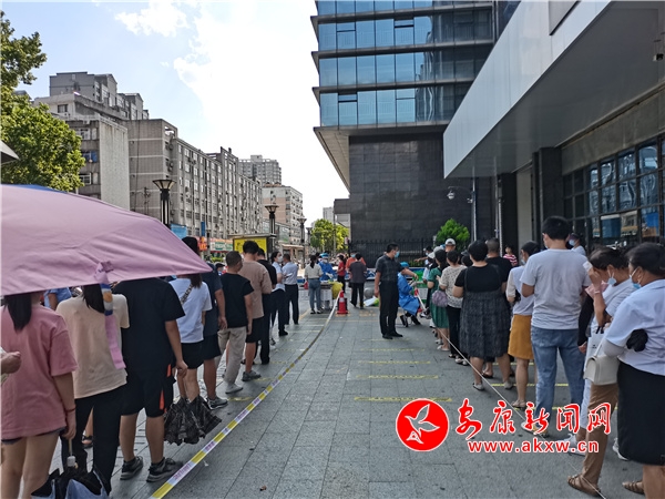 按照全市新冠肺炎疫情防控指揮部的周密部署,8月18日下午,漢濱中心城區(qū)啟動第二次全員核酸檢測工作 。圖為安火路社區(qū)居民在執(zhí)勤民警、醫(yī)務人員、社區(qū)工作者和志……