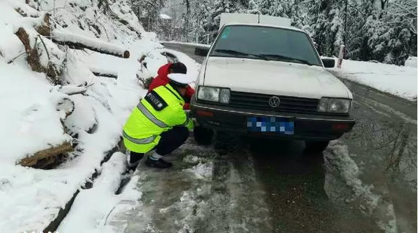 雪天車輛進退兩難 漢濱交警熱心幫脫困