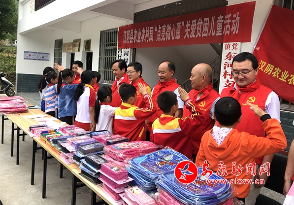 本網(wǎng)訊 (通訊員 張莉)一個嶄新的書包、一個心儀已久的文具盒、一盒書寫未來的鉛筆……每個孩子都應(yīng)被寵愛,每個夢想都值得去灌溉。為了讓貧困留守兒童也享有同樣美好的節(jié)日,六一兒童節(jié)一大早,漢陰縣農(nóng)業(yè)農(nóng)村局領(lǐng)導(dǎo)干部前往幫扶聯(lián)系村漩渦鎮(zhèn)東河村,舉行“點亮微心愿、關(guān)愛貧困兒童”公益行活動,用實際行動為貧困留守兒童送去愛心,送去歡樂,給他們更多的“精細關(guān)愛”,讓夢想、信心與愛重回孩子們的心中。