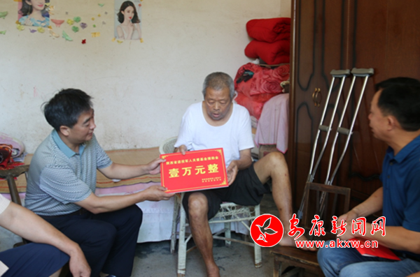 本網(wǎng)訊 (通訊員 方祎峰) 8月15日,漢陰縣委常委、縣政府副縣長李宗山帶領(lǐng)縣退役軍人事務(wù)局、縣慈善協(xié)會等單位上門為王懷榮、彭書強(qiáng)、陳友根三位困難退役軍人送去了省級第二批“關(guān)愛基金”援助金各1萬元。