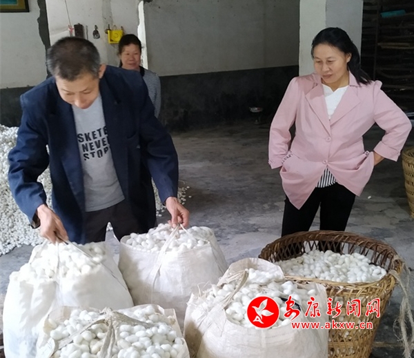 在收購(gòu)現(xiàn)場(chǎng),駐村第一書記徐磊介紹到,自2018年以來,在鎮(zhèn)黨委、鎮(zhèn)政府的堅(jiān)強(qiáng)領(lǐng)導(dǎo)和縣教體科技局的傾情幫扶下,五坪村立足實(shí)際,不斷優(yōu)化蠶桑產(chǎn)業(yè),積極引導(dǎo)和鼓勵(lì)群眾種桑養(yǎng)蠶,走“黨支部+蠶桑專業(yè)合作社+家庭車間”的產(chǎn)業(yè)發(fā)展模式,蠶桑產(chǎn)業(yè)已成為五坪村農(nóng)業(yè)增效、農(nóng)民增收、貧困戶脫貧的重要支柱產(chǎn)業(yè)。目前,全村又緊鑼密鼓的投入到了晚秋蠶飼養(yǎng)工作中,爭(zhēng)取晚秋蠶繭再奪豐收。