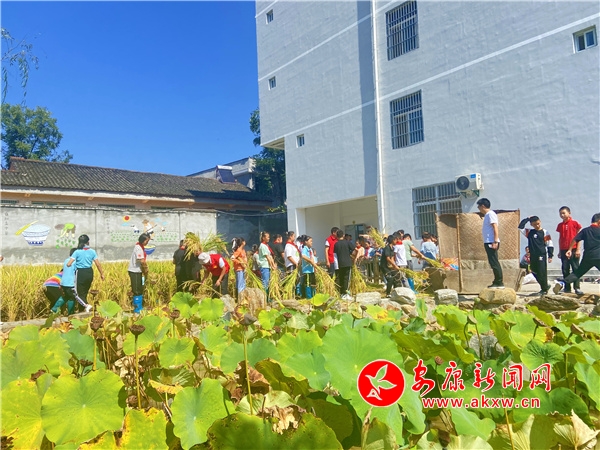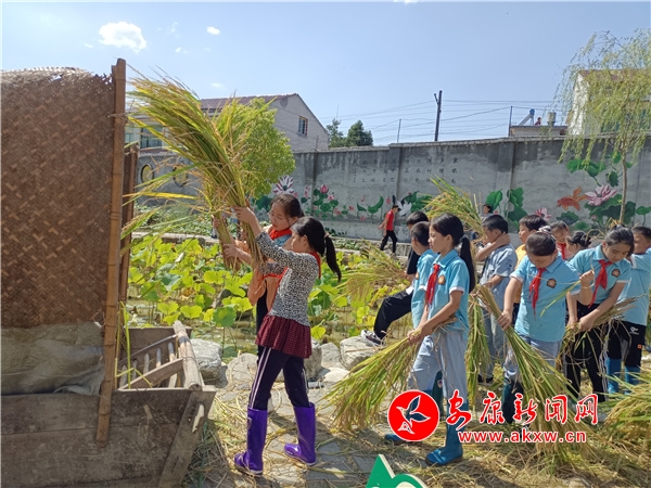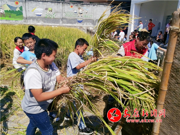 “同學(xué)們,你們看那一串串飽滿的稻穗掛在枝頭,長(zhǎng)得多喜人吶!現(xiàn)在我們要去收獲自己辛勤耕耘的勞動(dòng)果實(shí)了!大家要認(rèn)真學(xué)習(xí)怎樣割稻子,打稻谷,聽(tīng)從指揮,注意安全……”“老師,我要參與,我不怕累。”“我去年就學(xué)會(huì)了割稻子,今年我要學(xué)會(huì)打稻谷!”“我在電視上見(jiàn)過(guò),這個(gè)打谷子的工具歷史可悠久了。”8R8安康新聞網(wǎng)