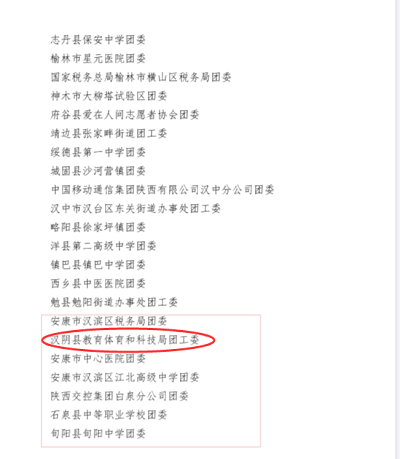 本網(wǎng)訊(通訊員 林愛銘)近日,共青團陜西省委表彰了2020—2021年度“陜西省優(yōu)秀共青團員”“陜西省優(yōu)秀共青團干部”“陜西省五四紅旗團支部”“陜西省五四紅旗團委”,漢陰縣教育體育和科技局團工委榜上有名,榮獲“陜西省五四紅旗團委”榮譽稱號。