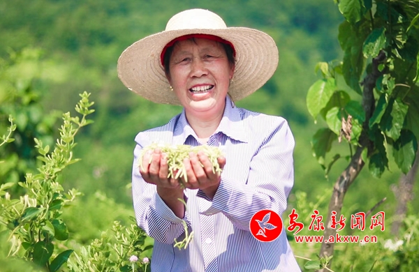 “我們?nèi)ツ昃驮谶@里摘金銀花,今年我們又來這里摘,老板也對我們好,我們也很滿意,一天能賺100多塊錢,我就住在這附近的,孫子也照看了。”三柳村村民謝千翠說。