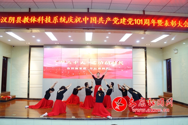 會上縣第四幼兒園展演了舞蹈《紅旗頌》,實驗小學黨員教師展示了微黨課《弘揚航天精神 吾輩砥礪前行》,漢陰初級中學和職教中心分別表演了詩朗誦《為有犧牲多壯志》和歌伴舞《愛永在》等精彩節(jié)目。局機關(guān)班子成員、部分鎮(zhèn)中心小學、單設(shè)初中、局直單位黨支部書記、受表彰人員代表、納新和轉(zhuǎn)正黨員參加會議。
