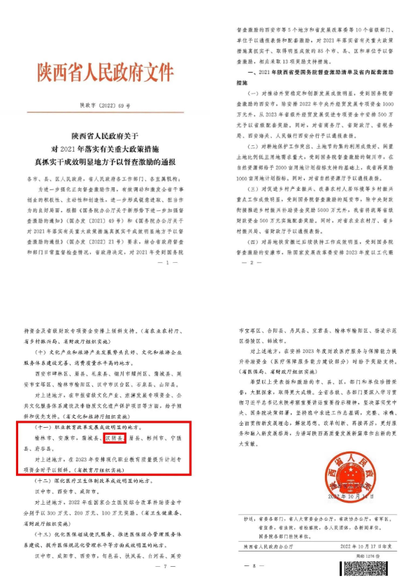 從陜西省人民政府文件《陜西省人民政府關(guān)于對2021年落實(shí)有關(guān)重大政策措施真抓實(shí)干成效明顯地方予以督查激勵(lì)的通報(bào)》(陜政字[2022]69號(hào))獲悉,漢陰縣獲評2021年度職業(yè)教育改革發(fā)展成效明顯縣。此次全省共六個(gè)縣區(qū)榮獲職業(yè)教育改革發(fā)展成效明顯縣,漢陰縣名列其中。陜西省教育廳將在2023年安排現(xiàn)代職業(yè)教育質(zhì)量提升計(jì)劃專項(xiàng)資金時(shí)對漢陰縣予以傾斜。692安康新聞網(wǎng)