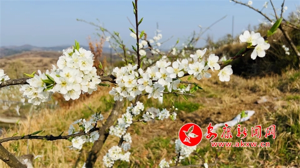 走進(jìn)趙家河村,放眼望去,潔白的李花隨山體連綿起伏,就像海里的浪花朵朵,一片生機(jī)盎然,走近一看,一串串、一簇簇的李子花開(kāi)得正盛,在春風(fēng)的吹拂下輕輕搖曳,每一朵花都開(kāi)得燦爛奪目,潔白如玉,宛如一顆顆璀璨的明珠?諝庵袕浡幕ㄏ,讓人心曠神怡,不少游客結(jié)伴而來(lái),賞花、拍照,盡情享受春天的美好。