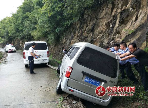 漢陰:雨天救助一側(cè)翻車輛