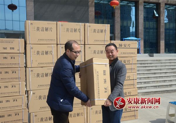 安康新聞網(wǎng)訊(通訊員 董芮)2月26日,西安自力中藥集團有限公司向石泉衛(wèi)計局贈予價值近15萬元的藥品,共計28箱(肺安片5箱、三黃清解片15箱、磁朱丸8箱)。縣衛(wèi)計局、城關(guān)鎮(zhèn)衛(wèi)生院等醫(yī)療機構(gòu)負責人到達現(xiàn)場并予以簽字確認,當場向醫(yī)療機構(gòu)進行了發(fā)放。