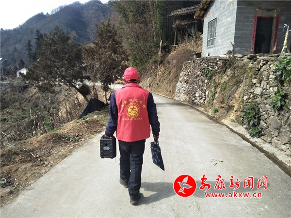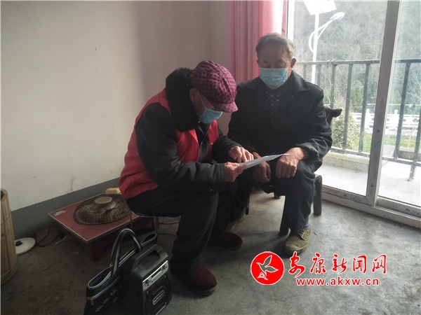 用實(shí)際行動感黨恩,李德國從大年初三起加入抗疫隊(duì)伍,和干部們一起沖鋒在疫情防控第一線。在宣傳走訪期間,李德國帶頭示范,主動帶上口罩,每天在村上巡邏一圈,拿上宣傳單頁上門發(fā)放。
