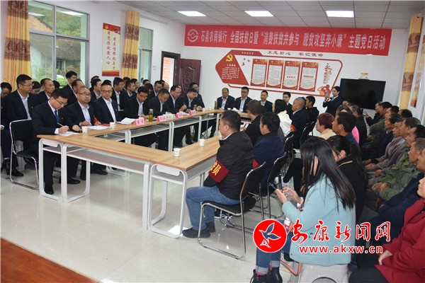 本網(wǎng)訊(通訊員 陳沙沙)金秋獻(xiàn)愛心,消費(fèi)助脫貧。10月17日上午,在全國第7個扶貧日到來之際,石泉農(nóng)商銀行黨委積極響應(yīng)國家號召,組織各基層黨支部書記及機(jī)關(guān)部分黨員共40余人前往包抓幫扶中池鎮(zhèn)筷子鋪村開展全國“扶貧日”暨“消費(fèi)扶貧共參與 脫貧致富奔小康”主題黨日活動。