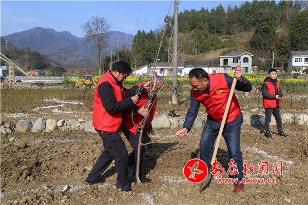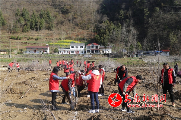 全體鎮(zhèn)機關干部、工作隊員和30余名青年志愿者一到中壩村植樹點就拿起工具,積極投身植樹活動。在活動現(xiàn)場,按照技術員的指導,大家?guī)兹艘唤M,分工明確、配合默契,揮鍬鏟土、扶植樹苗、培實新土,忙得熱火朝天。周邊群眾紛紛加入義務植樹隊伍,經過辛勤勞動,550余株櫻桃樹在春風里昂然挺立,煥發(fā)出勃勃生機。為確保植株成活率,林業(yè)技術人員還進行了現(xiàn)場指導。