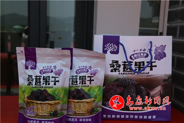 桑葚鮮果保鮮時間短,采摘后不及時銷售便會造成損失。明星村大陽蠶桑支部通過和石泉縣錦絲盛農(nóng)業(yè)科技有限公司合作,采取“支部+合作社+公司+農(nóng)戶”的發(fā)展模式,將一部分鮮果通過工廠加工,將銷售價格為5元每斤的新鮮桑葚精選制成桑葚干,桑葚干售價60元每斤;另一部分桑葚釀造成桑葚果酒,還有一部分桑葚可以通過蒸餾古法烤酒的方式制成白酒。以此增加桑葚的附加值,通過提升桑葚的附加值,增加農(nóng)民的收入。