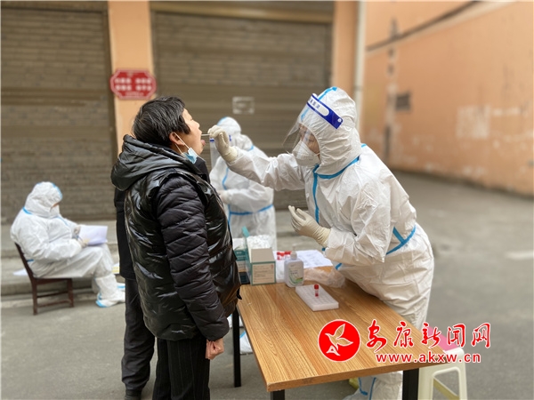 為方便群眾,各集中核酸采樣點(diǎn)設(shè)在戶外十字路口、小區(qū)空地等無(wú)遮擋的醒目位置,寒冷的天氣和讓醫(yī)護(hù)人員的面罩上多了一層霧氣,他們拿著采樣拭子的手也凍得很僵硬。工作人員的辛勞付出,居民們看在眼里,記在心中。“謝謝工作人員,我站幾分鐘就被寒風(fēng)吹透,你們辛苦了。”家住池河鎮(zhèn)西苑社區(qū)的蔣大娘硬是將自己手中的熱水袋塞到醫(yī)護(hù)人員手中。