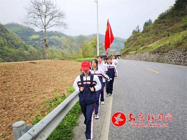 活動中,該校師生沿著公路有序行進,途中相互鼓勵打氣,順手撿走路邊垃圾,用實際行動保護家鄉(xiāng)的綠水青山,彰顯中學(xué)生良好的精神風(fēng)貌。經(jīng)過2個小時的徒步行走,師生順利到達終點喜河鎮(zhèn)紅色文化廣場。